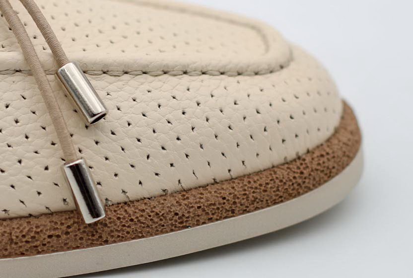رویه ی این کفش از چرم طبیعی گاوی با پانچ های نرم
