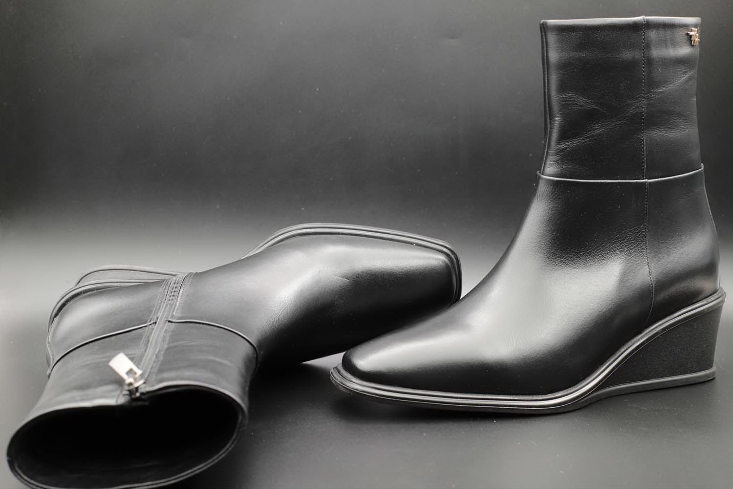 "مونت"بوت زنانه چرم مشکی پاشنه مخفی مدل کلاسیک چنته