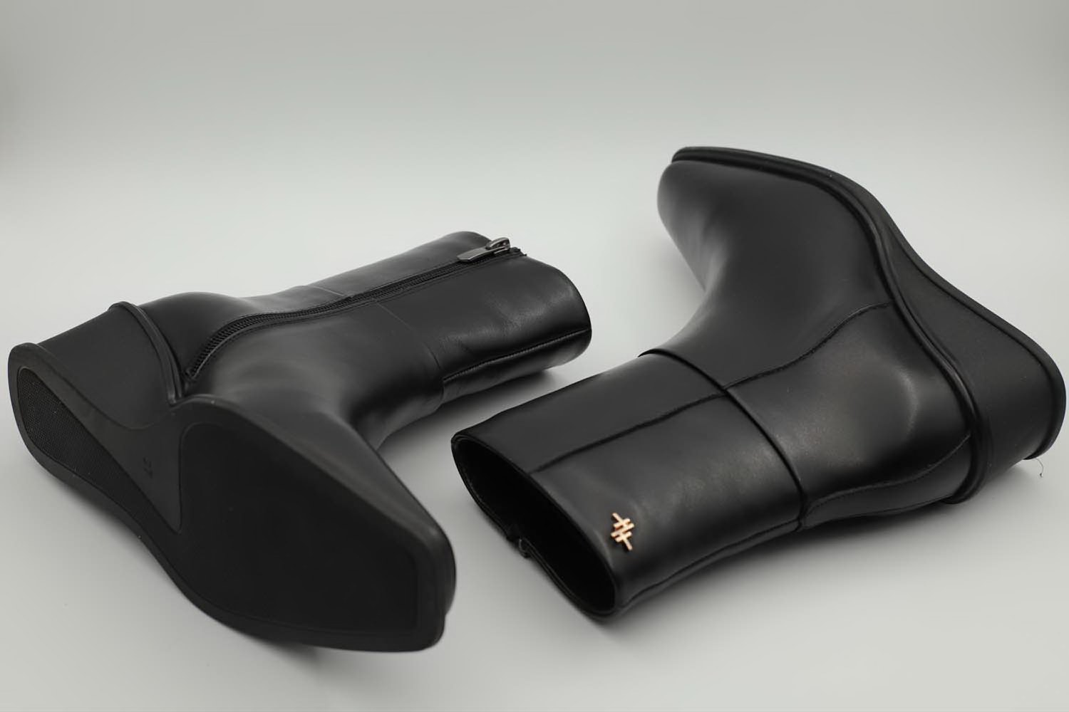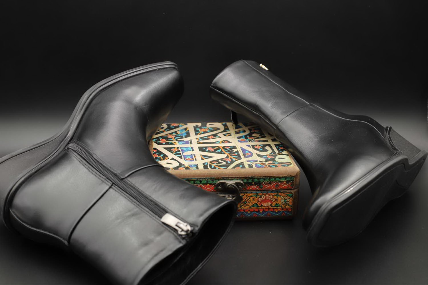 بوت زنانه چرم مشکی چنته با پاشنه ی مخفی یک تکه