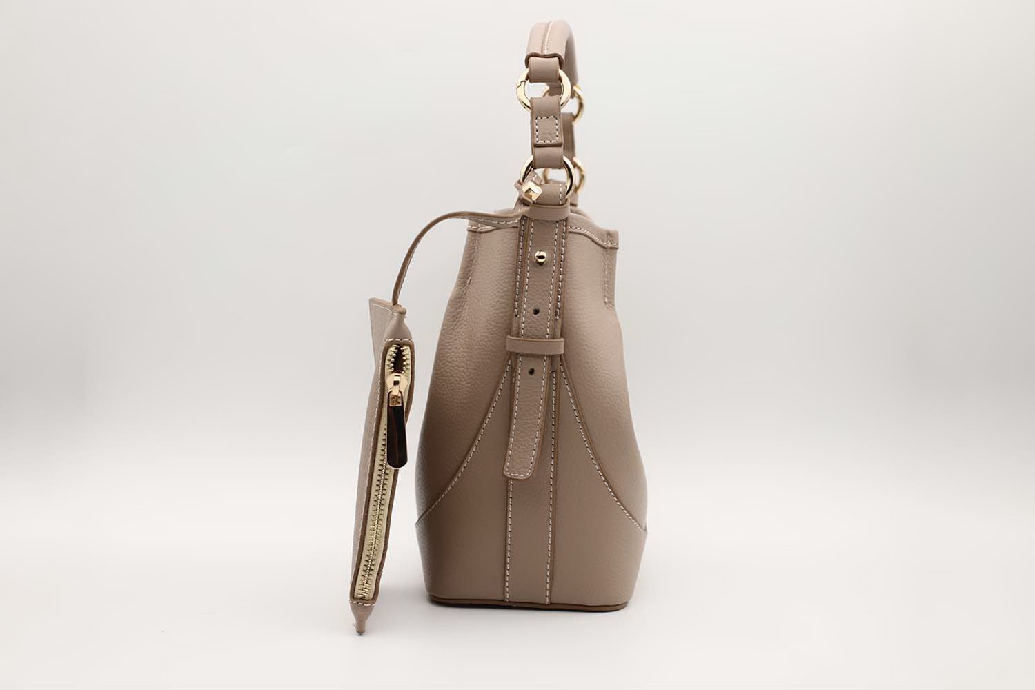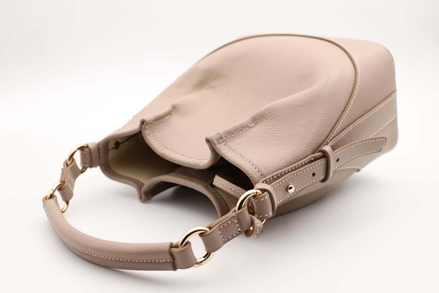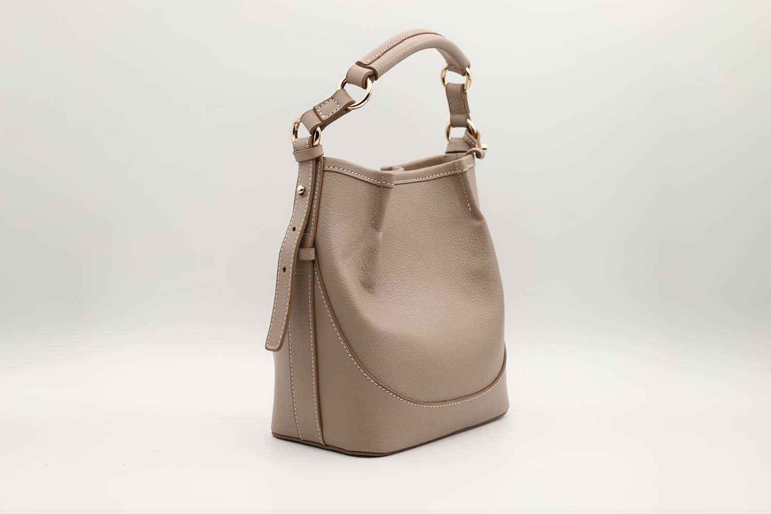 درست مثل یک همراه واقعی: انعطافپذیر اما قابلاعتماد.دستهی کیف با یراق طلاییای تزئین شده که نگاه نمیگیرد… میلغزد.