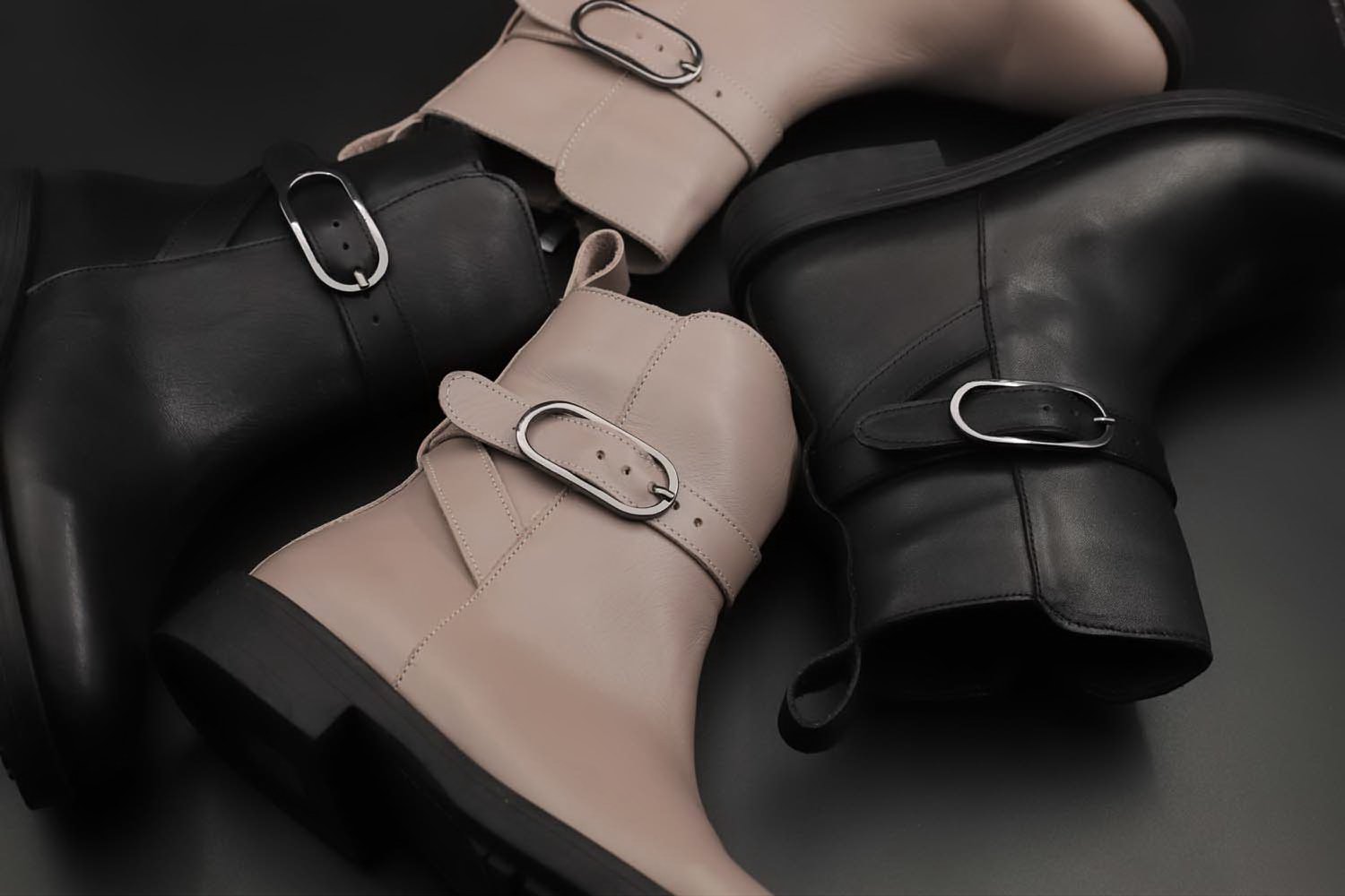 بوت زنانه چرم طبیعی دست دوز الیپس